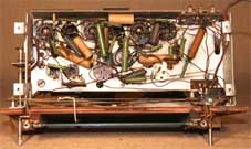 and the band switch; the rotation drives the tuning dial pointer and